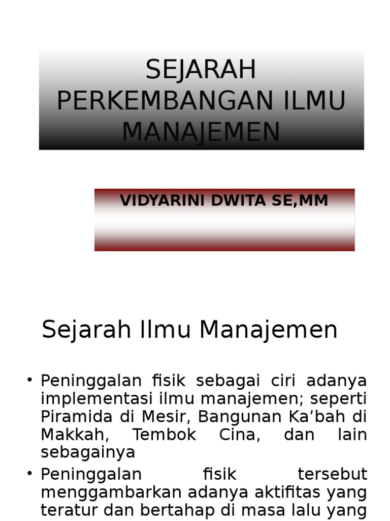 Sejarah Perkembangan Ilmu Manajemen PDF Sumber : www.scribd.com